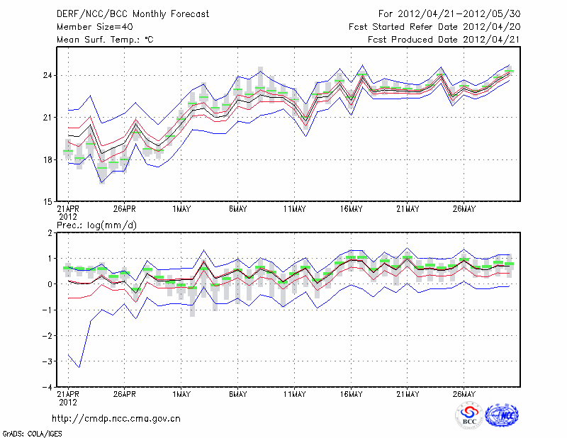临 沧 (LAT:23.95 LON:100.22) 2012-04-21        预测