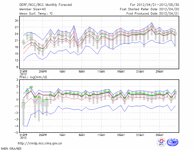 信 阳 (LAT:32.13 LON:114.05) 2012-04-21        预测