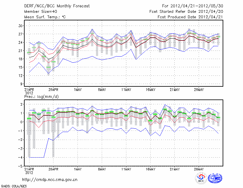 安 庆 (LAT:30.53 LON:117.05) 2012-04-21        预测