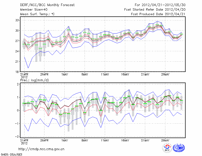 百 色 (LAT:23.90 LON:106.60) 2012-04-21        预测