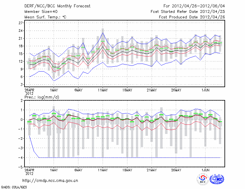 牡 丹 江 (LAT:44.57 LON:129.60) 2012-04-26        预测