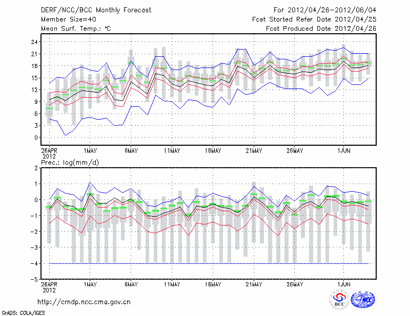 锡林浩特 (LAT:43.95 LON:116.07) 2012-04-26        预测