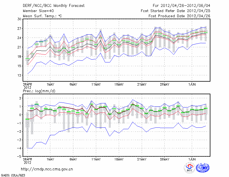 南 京 (LAT:32.00 LON:118.80) 2012-04-26        预测