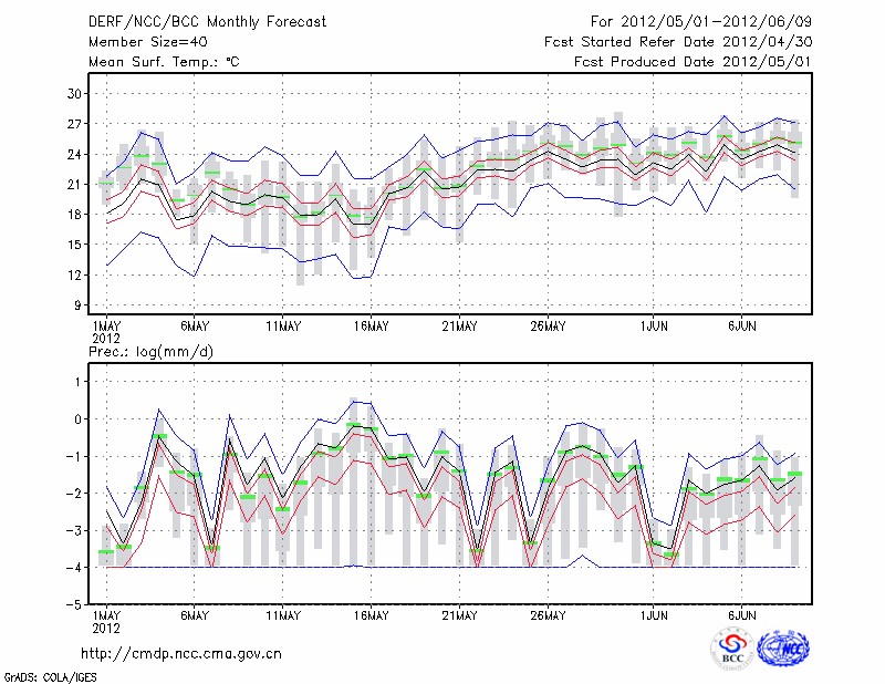 哈 密 (LAT:42.82 LON:93.52) 2012-05-01        预测