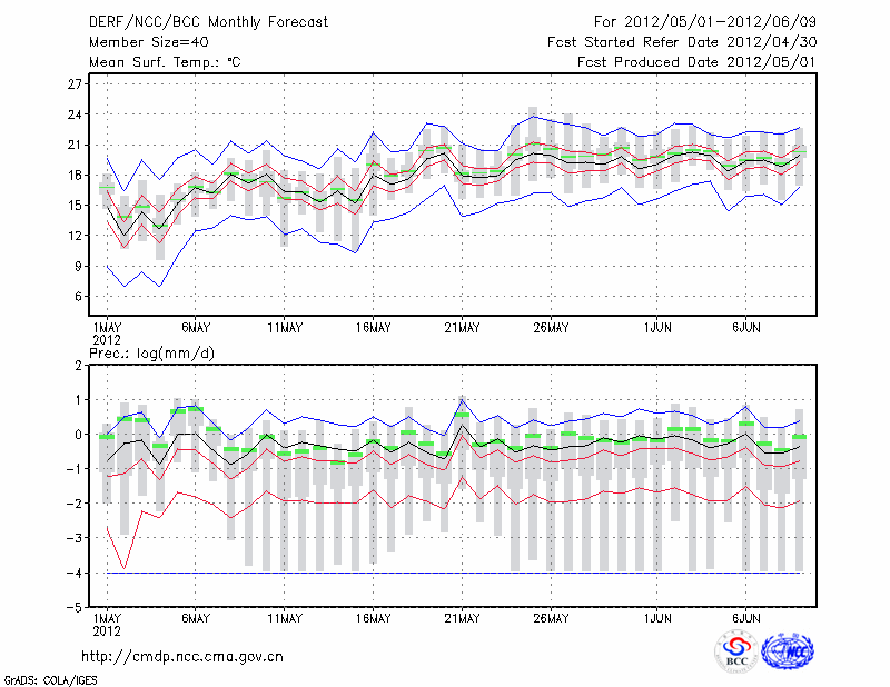 呼和浩特 (LAT:40.82 LON:111.68) 2012-05-01        预测