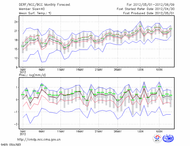 天 水 (LAT:34.58 LON:105.75) 2012-05-01        预测