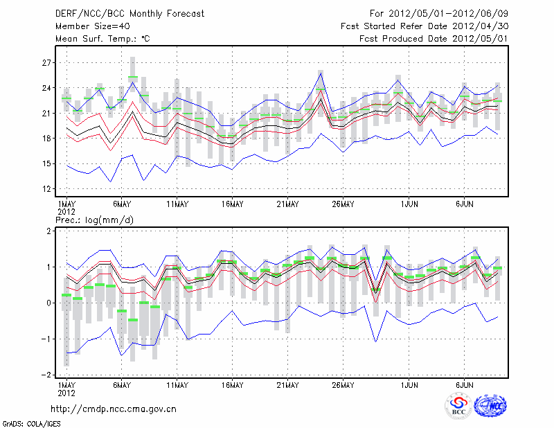 毕 节 (LAT:27.30 LON:105.23) 2012-05-01        预测