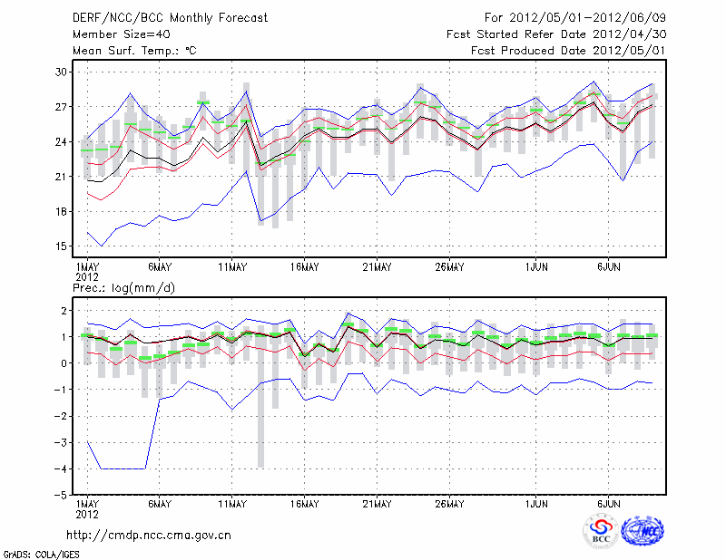 安 庆 (LAT:30.53 LON:117.05) 2012-05-01        预测