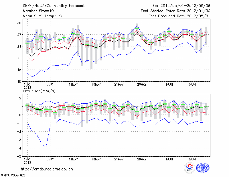 南 昌 (LAT:28.60 LON:115.92) 2012-05-01        预测