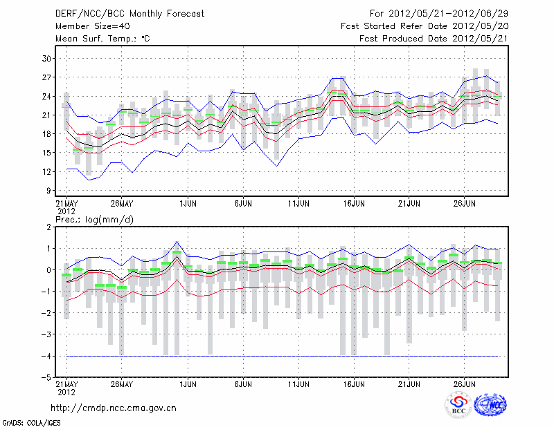 哈 尔 滨 (LAT:45.75 LON:126.77) 2012-05-21        预测