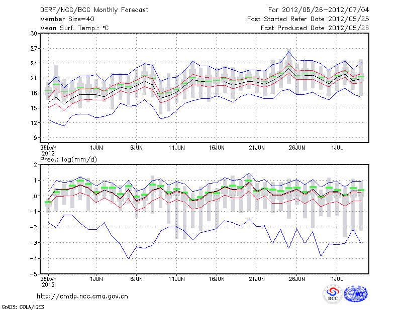 牡 丹 江 (LAT:44.57 LON:129.60) 2012-05-26        预测