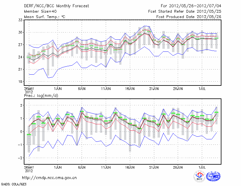 钟 祥 (LAT:31.17 LON:112.57) 2012-05-26        预测