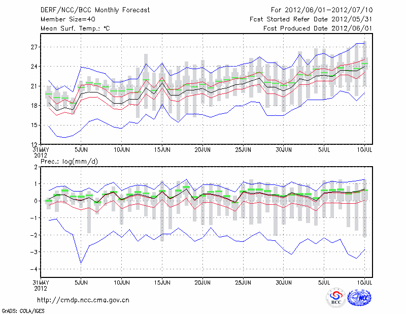 鸡 西 (LAT:45.28 LON:130.95) 2012-06-01        预测