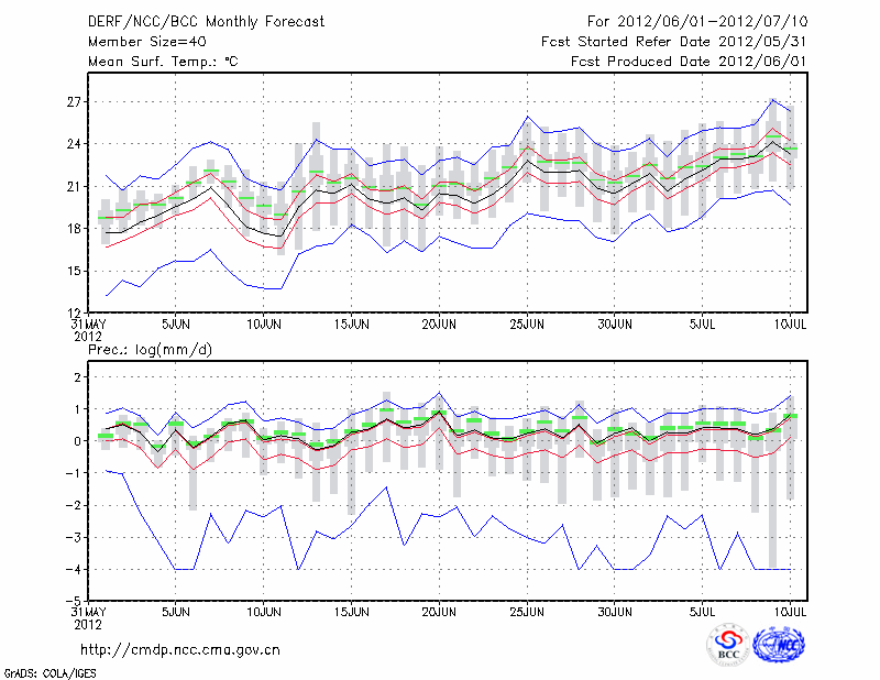 牡 丹 江 (LAT:44.57 LON:129.60) 2012-06-01        预测