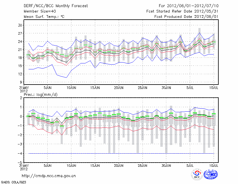 锡林浩特 (LAT:43.95 LON:116.07) 2012-06-01        预测