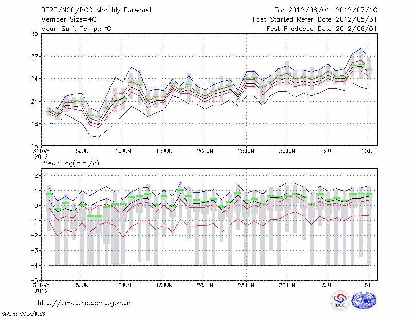 青 岛 (LAT:36.07 LON:120.33) 2012-06-01        预测
