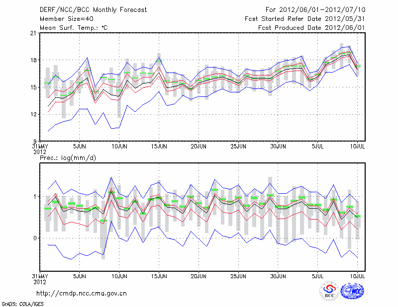 康 定 (LAT:30.05 LON:101.97) 2012-06-01        预测