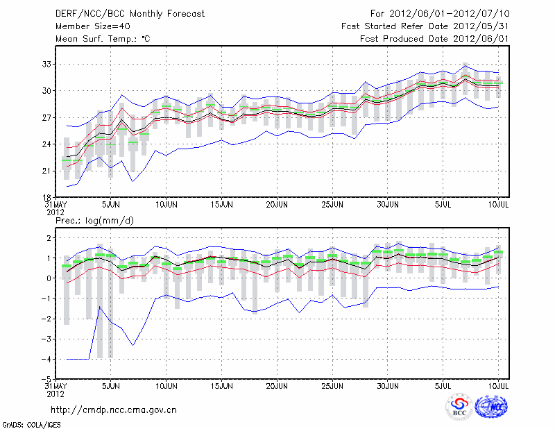 杭 州 (LAT:30.23 LON:120.17) 2012-06-01        预测