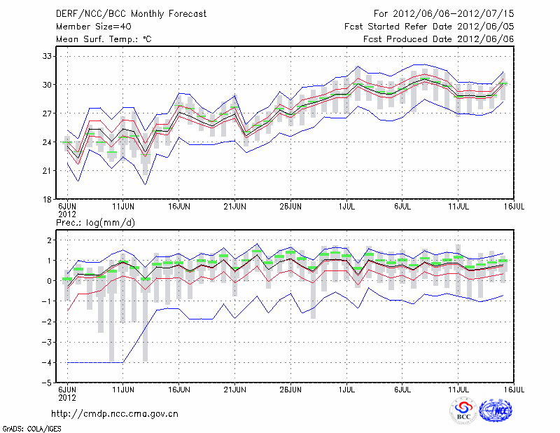 东 台 (LAT:32.87 LON:120.32) 2012-06-06        预测