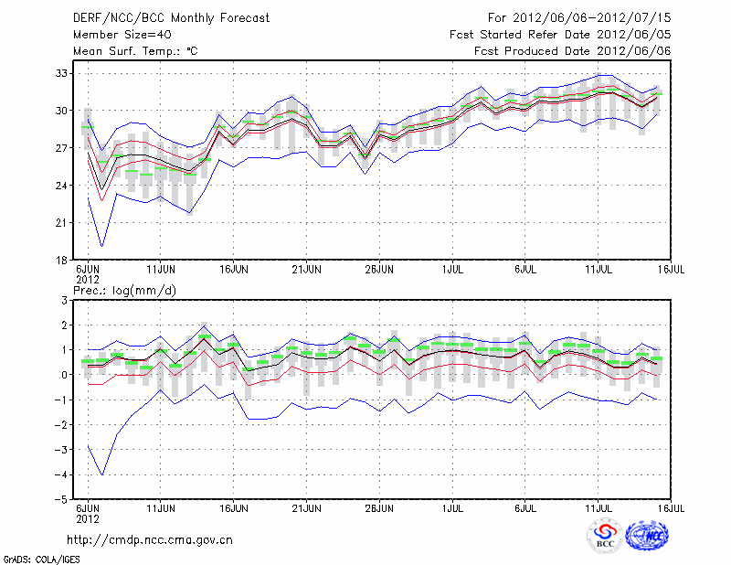 合 肥 (LAT:31.87 LON:117.23) 2012-06-06        预测
