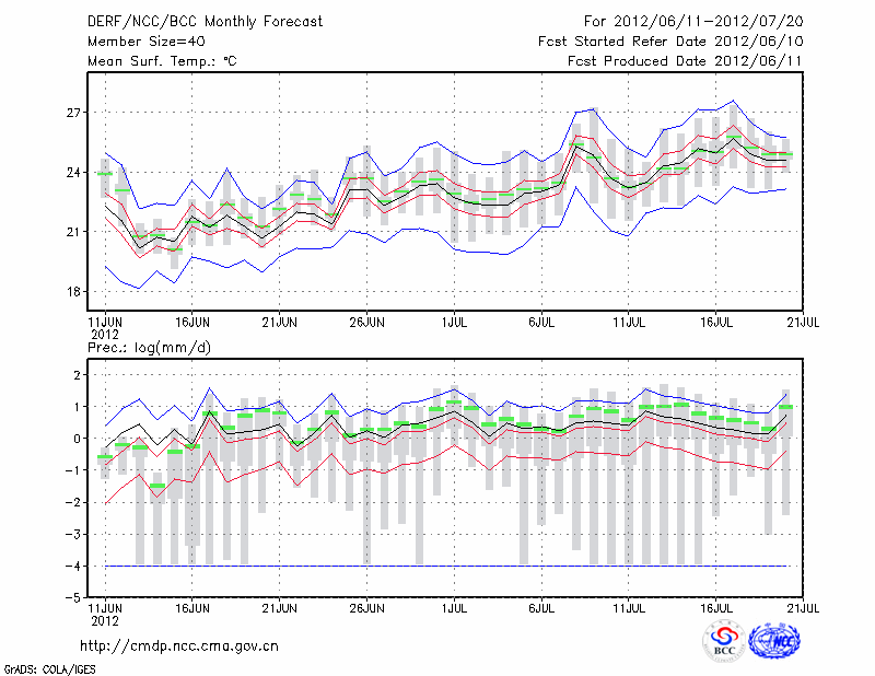 青 岛 (LAT:36.07 LON:120.33) 2012-06-11        预测