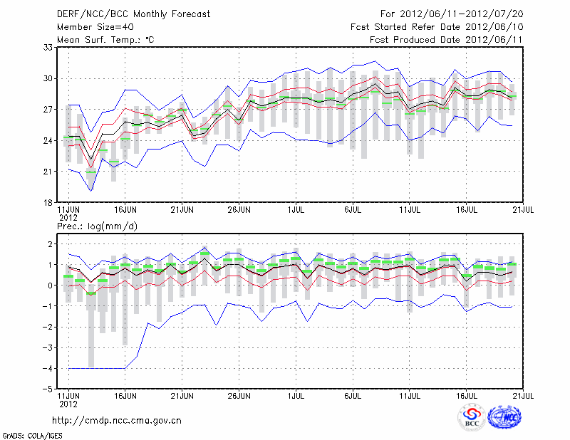 东 台 (LAT:32.87 LON:120.32) 2012-06-11        预测