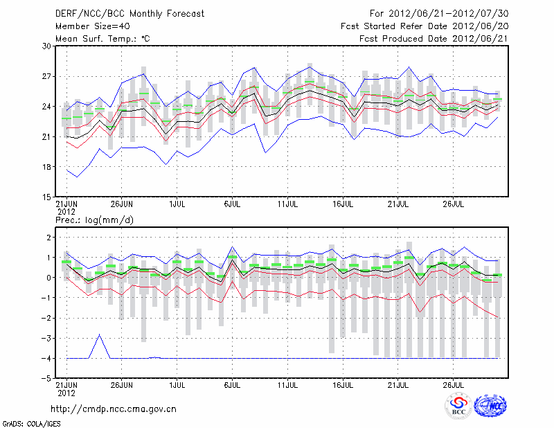 哈 尔 滨 (LAT:45.75 LON:126.77) 2012-06-21        预测