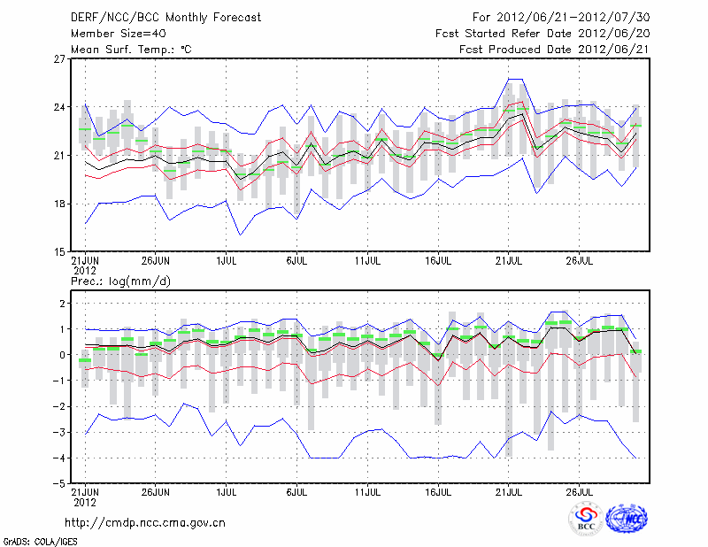 西 峰 镇 (LAT:35.73 LON:107.63) 2012-06-21        预测