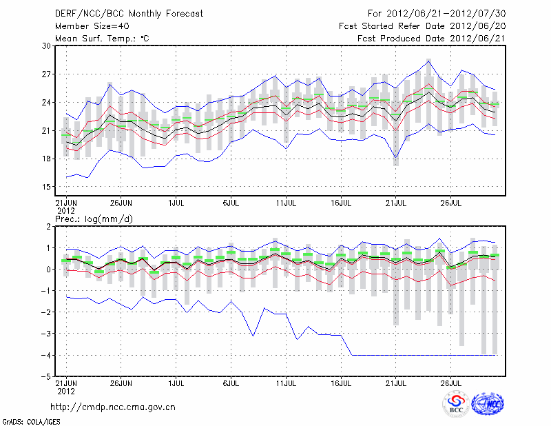 牡 丹 江 (LAT:44.57 LON:129.60) 2012-06-21        预测