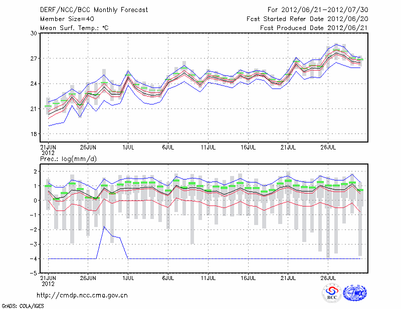 丹 东 (LAT:40.05 LON:124.33) 2012-06-21        预测