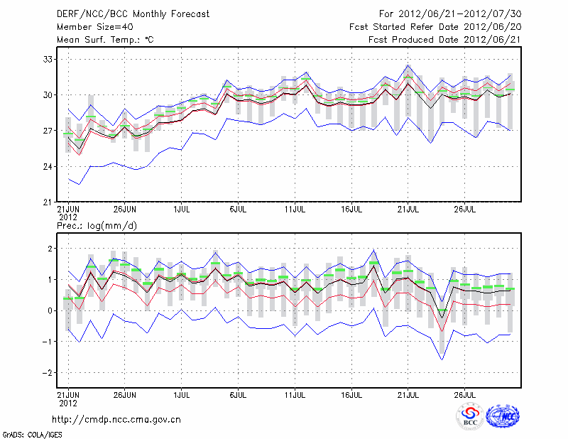 钟 祥 (LAT:31.17 LON:112.57) 2012-06-21        预测