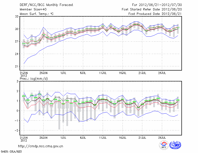屯 溪 (LAT:29.71 LON:118.28) 2012-06-21        预测