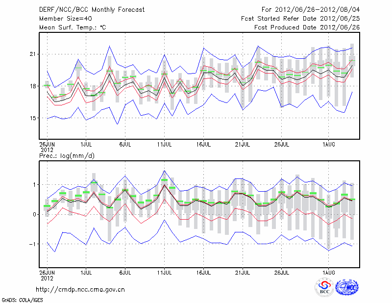 西 宁 (LAT:36.62 LON:101.77) 2012-06-26        预测