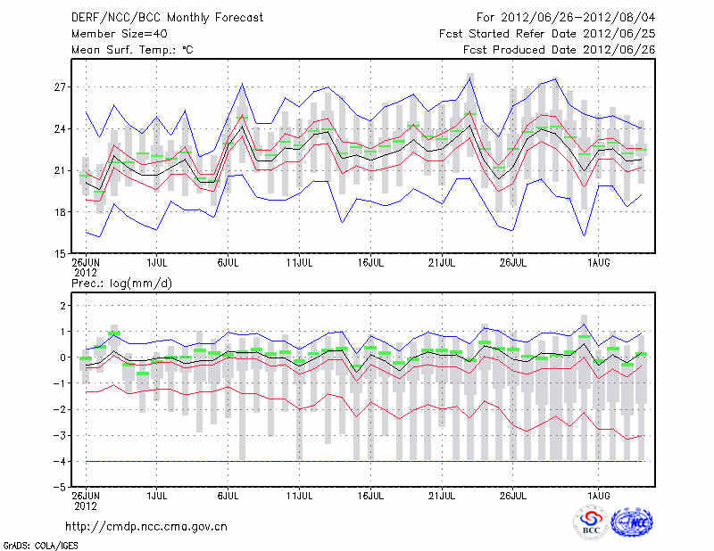 锡林浩特 (LAT:43.95 LON:116.07) 2012-06-26        预测
