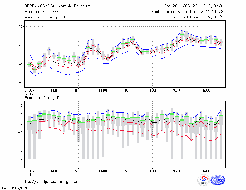 青 岛 (LAT:36.07 LON:120.33) 2012-06-26        预测