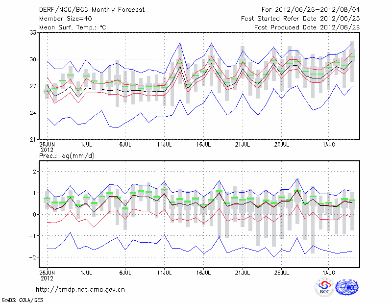 西 安 (LAT:34.30 LON:108.93) 2012-06-26        预测