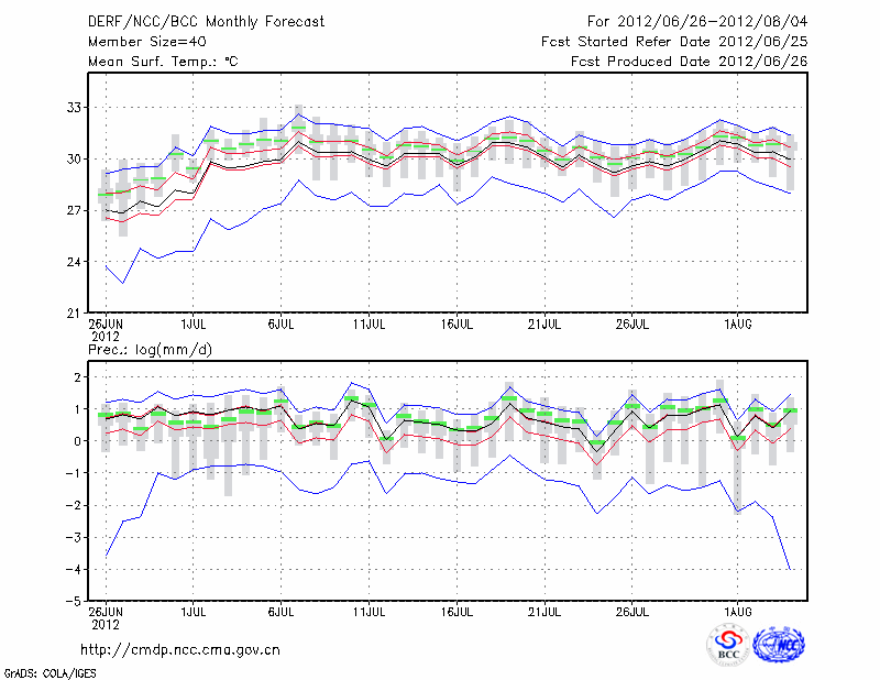 南 京 (LAT:32.00 LON:118.80) 2012-06-26        预测