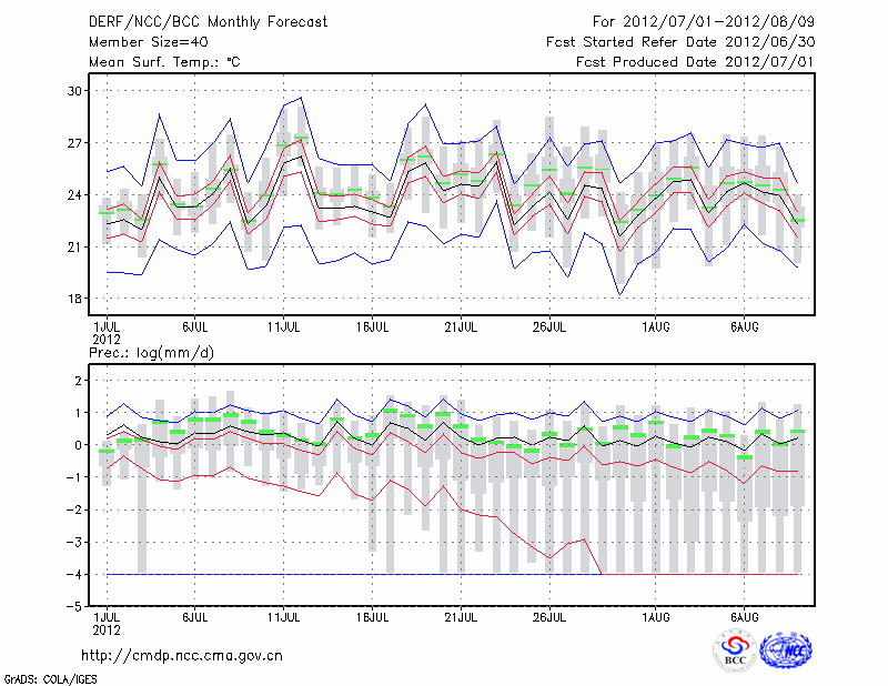 乌兰浩特 (LAT:46.08 LON:122.05) 2012-07-01        预测