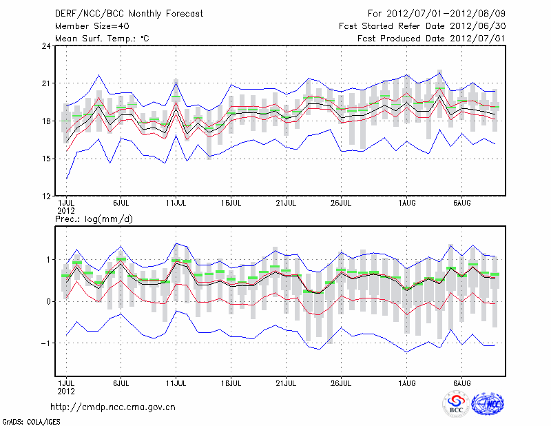 西 宁 (LAT:36.62 LON:101.77) 2012-07-01        预测