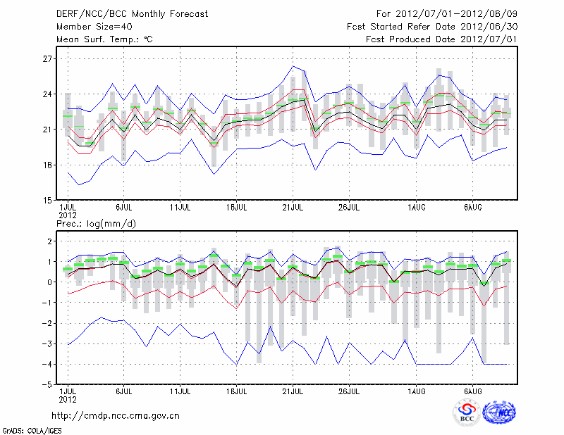 西 峰 镇 (LAT:35.73 LON:107.63) 2012-07-01        预测