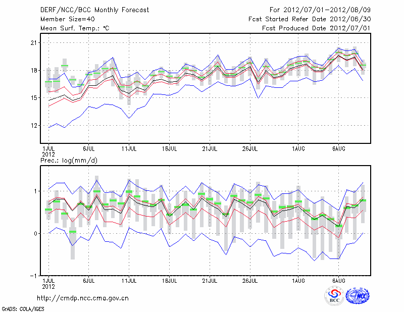 康 定 (LAT:30.05 LON:101.97) 2012-07-01        预测