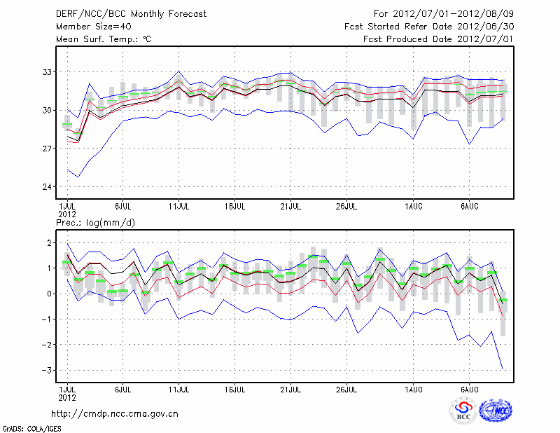 岳 阳 (LAT:29.38 LON:113.08) 2012-07-01        预测