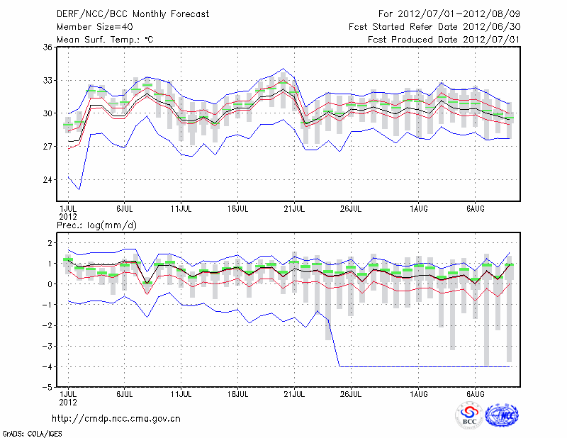 蚌 埠 (LAT:32.95 LON:117.37) 2012-07-01        预测