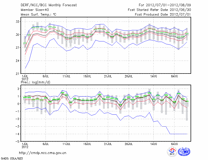 南 京 (LAT:32.00 LON:118.80) 2012-07-01        预测