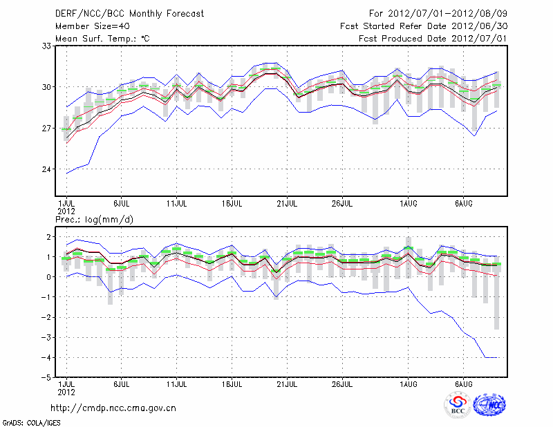 屯 溪 (LAT:29.71 LON:118.28) 2012-07-01        预测