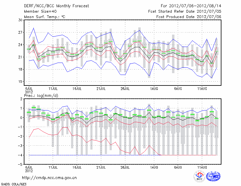 锡林浩特 (LAT:43.95 LON:116.07) 2012-07-06        预测