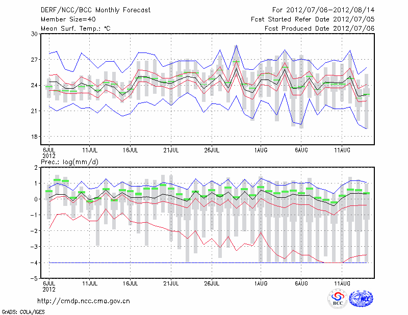 赤 峰 (LAT:42.27 LON:118.97) 2012-07-06        预测