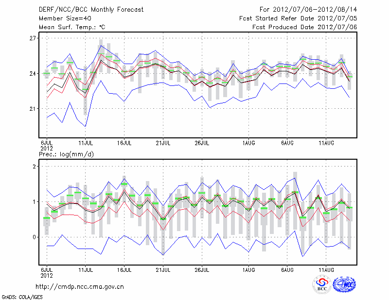 毕 节 (LAT:27.30 LON:105.23) 2012-07-06        预测