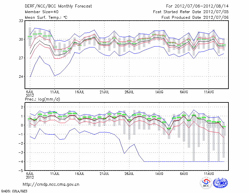 东 台 (LAT:32.87 LON:120.32) 2012-07-06        预测