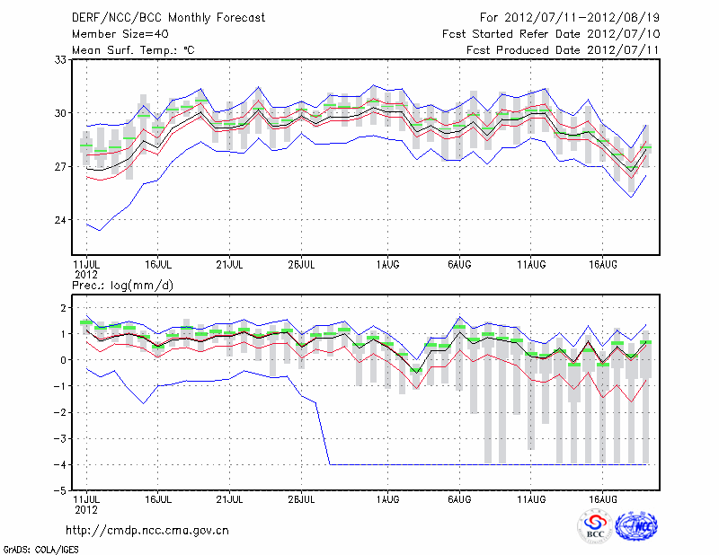 东 台 (LAT:32.87 LON:120.32) 2012-07-11        预测